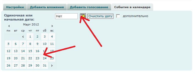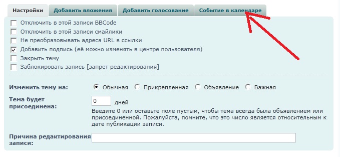 Во-вторых, при создании темы выберите вкладку "Событие в календаре".
