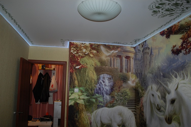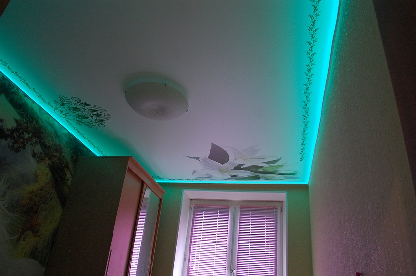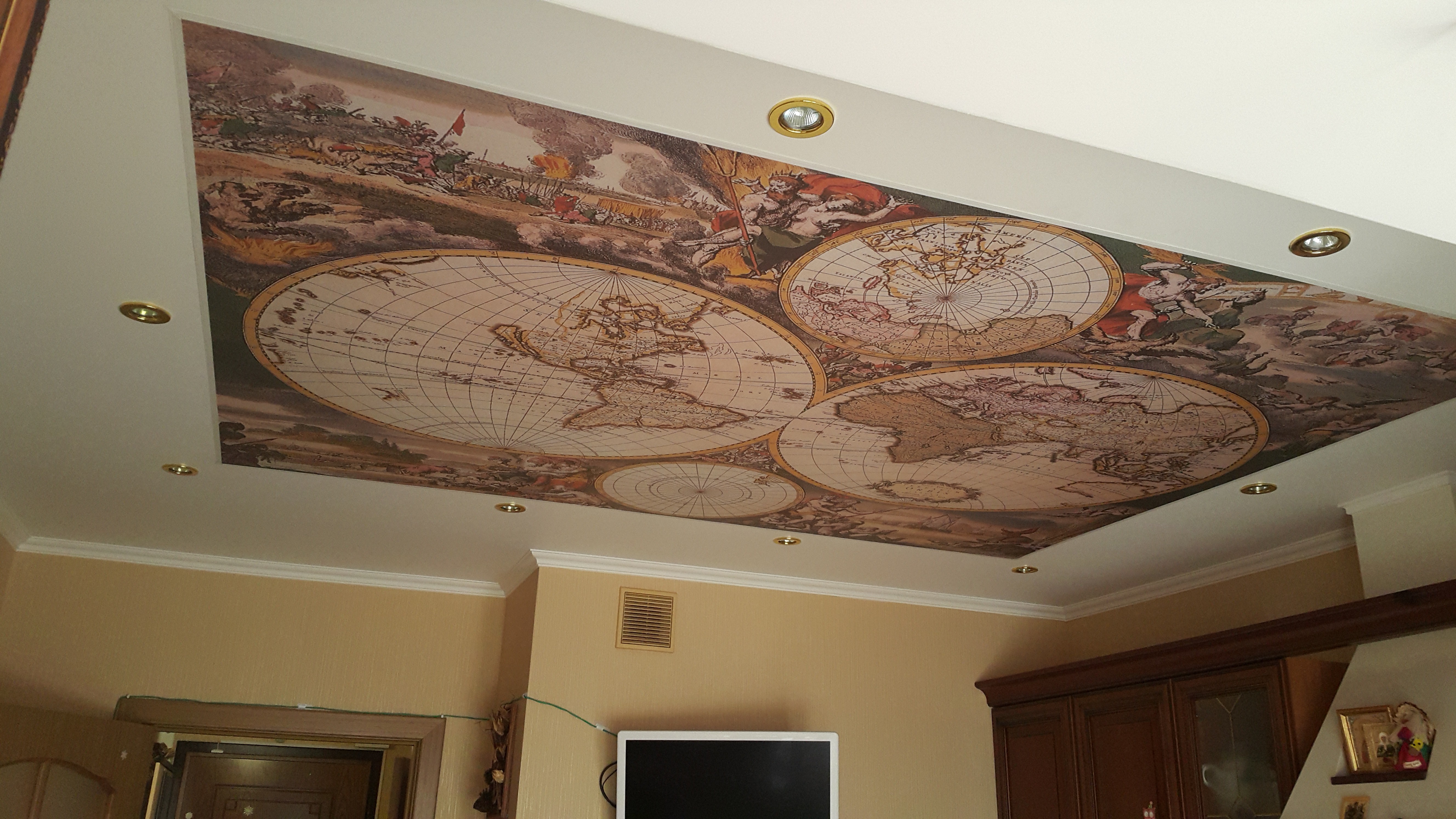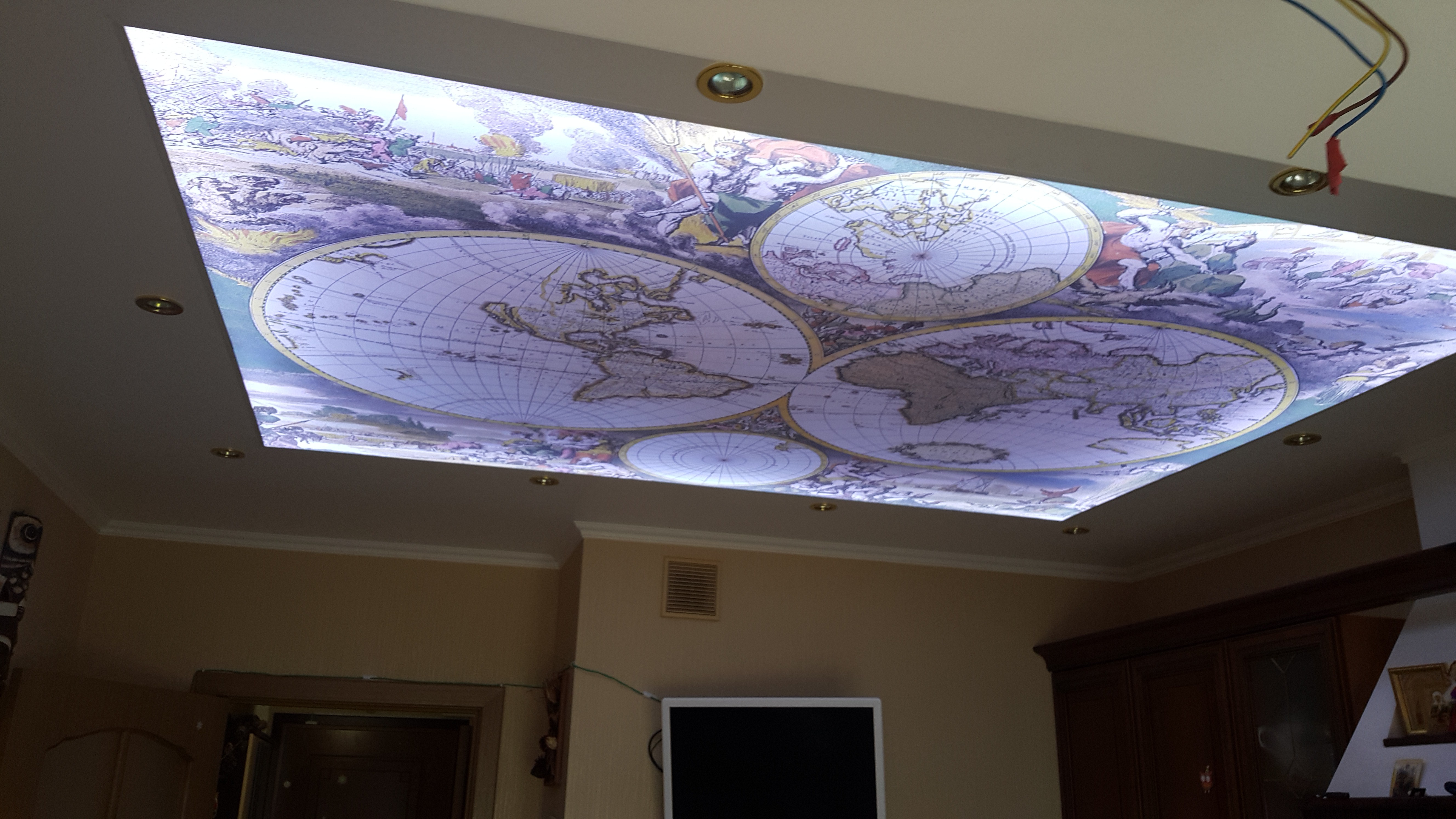 Наша последняя работа потолок с фотопечатью и подсветкой по периметру.